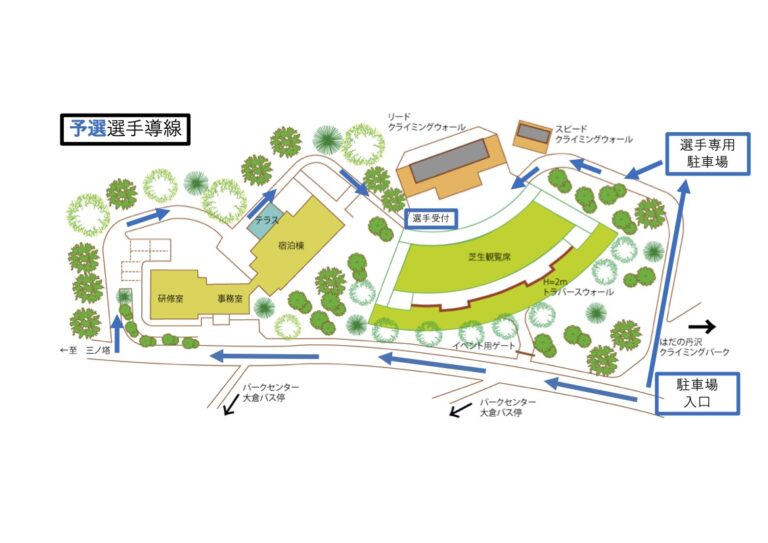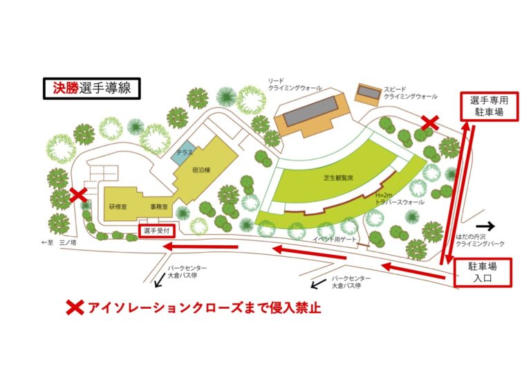 <予選及び決勝の選手専用駐車場と選手受付までの動線について>